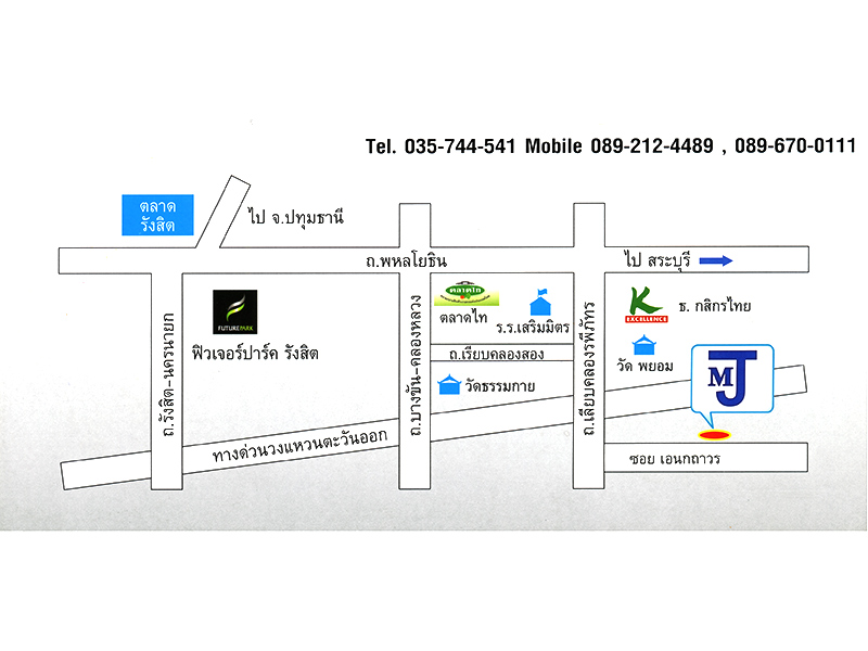 หจก. เอ็ม.เจ.เพ้นท์ แอนด์ เซอร์วิส อยุธยา อยู่ใกล้กับตลาดไท และประตูระบายน้ำพระอินทร์หรือมาทางด่วนวงแหวนรอบนอกฝั่งตะวันออกลงที่ทางลงบางปะอิน แล้ววิ่งเลียบถนนเลียบคลองระพีพัฒน์ ฝั่งจังหวัดพระนครศรีอยุธยา ผ่านหน้าวัดพะยอม แล้วเลี้ยวเข้าซอยเอนกถาวร วิ่งเข้าซอยประมาณ 300 เมตร